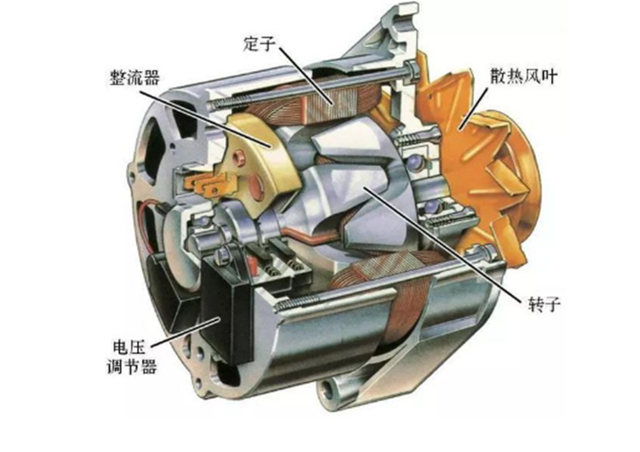 汽车用发电机可分为直流发电机和交流发电机,由于交流发电机在许多方面优于直流发电机,直流发电机已被淘汰,目前所有汽车均采用交流发电机,那么交流发电机怎么工作的呢?汽车发电机同样基于电磁感应原理。当外电路通过电刷使励磁绕组通电产生磁场,当转子旋转时,磁通交替地在定子绕组中变化,根据电磁感应原理可知,定子的三相绕组中便产生交变的感应电动势。定子绕阻若接入用电负载, 电机就有交流电能输出,经过发电机内部的整流桥将交流电转换成直流电从输出端子输出。这就是汽车交流发电机的发电原理。