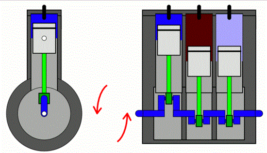 直列四缸发动机的点火顺序为1-2-4-3或1-3-4-2,1-4同位,2-3同位;而四冲程三缸发动机,点火顺序一般为1-3-2或1-2-3,曲轴旋转了一个720度只有三个气缸做功。因为三缸发动机工作时,总有两个缸体同时运行,而另外一个缸体单独运行,如果不找一个“帮手”,二者力道不一样就无法抵消,抖动就很难避免。所以为防止三缸机做功震动的先天问题,一般都加个平衡轴来抵消,但是,由于发动机结构等方面的限制,大多采用半平衡法,仅平衡掉部分力量,减轻发动机的振动。说白了还是没有完全解决!还是会抖动!这三缸发动机顾名思义就是只有三个气缸的发动机。相比我们熟悉的四缸发动机要少一个气缸,也就注定了它震动和噪音会比较大。