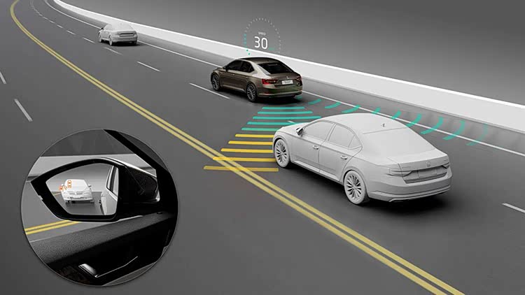 这两位因为涉及到了识别车道线,必须用摄像头来解决,有些厂家选择跟自适应巡航和主动刹车共用一个,但也可以像上图斯柯达这样,放在前风挡上,当然放在后视镜上。车身侧面等等地方也是OK的。