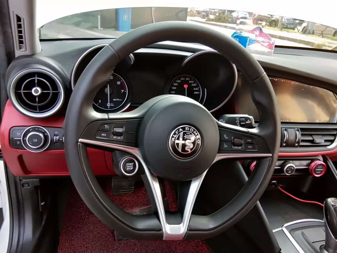 阿尔法罗密欧-Giulia的点火开关也比较特殊,在方向盘的左下方,它可不在中控台上面,点火的时候要注意呦。