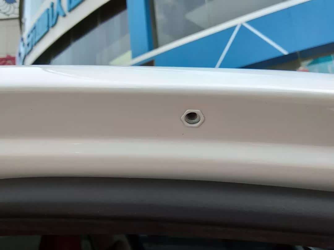 比较有意思的是,在它的门柱上有这样的螺栓孔,内部是有螺纹的,其它车上以前好像遇到过,但不常见,这个东西究竟是干什么用的呢?