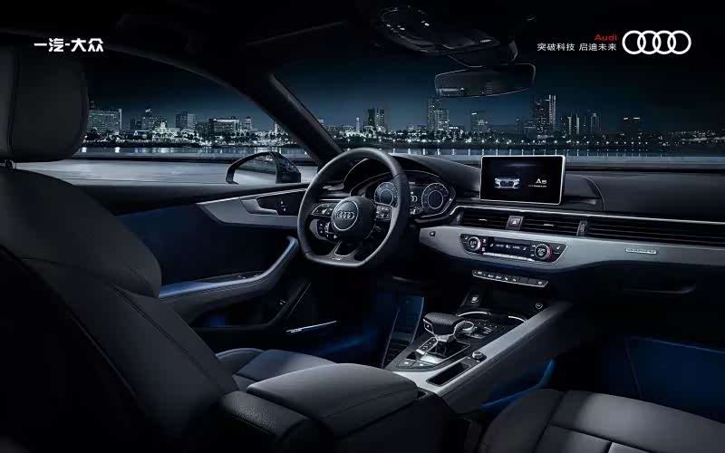 奥迪A5采用了最新的设计,简洁干练,突出科技感。其中12.3英寸高清全液晶仪表堪称一大亮点,仪表盘可进行放大缩小,中控上方拥有一块8.3英寸的显示屏,可通过新版MMI系统控制;空调区域旋钮设计高档感十足,下方则集成了部分驾驶相关的功能按钮。