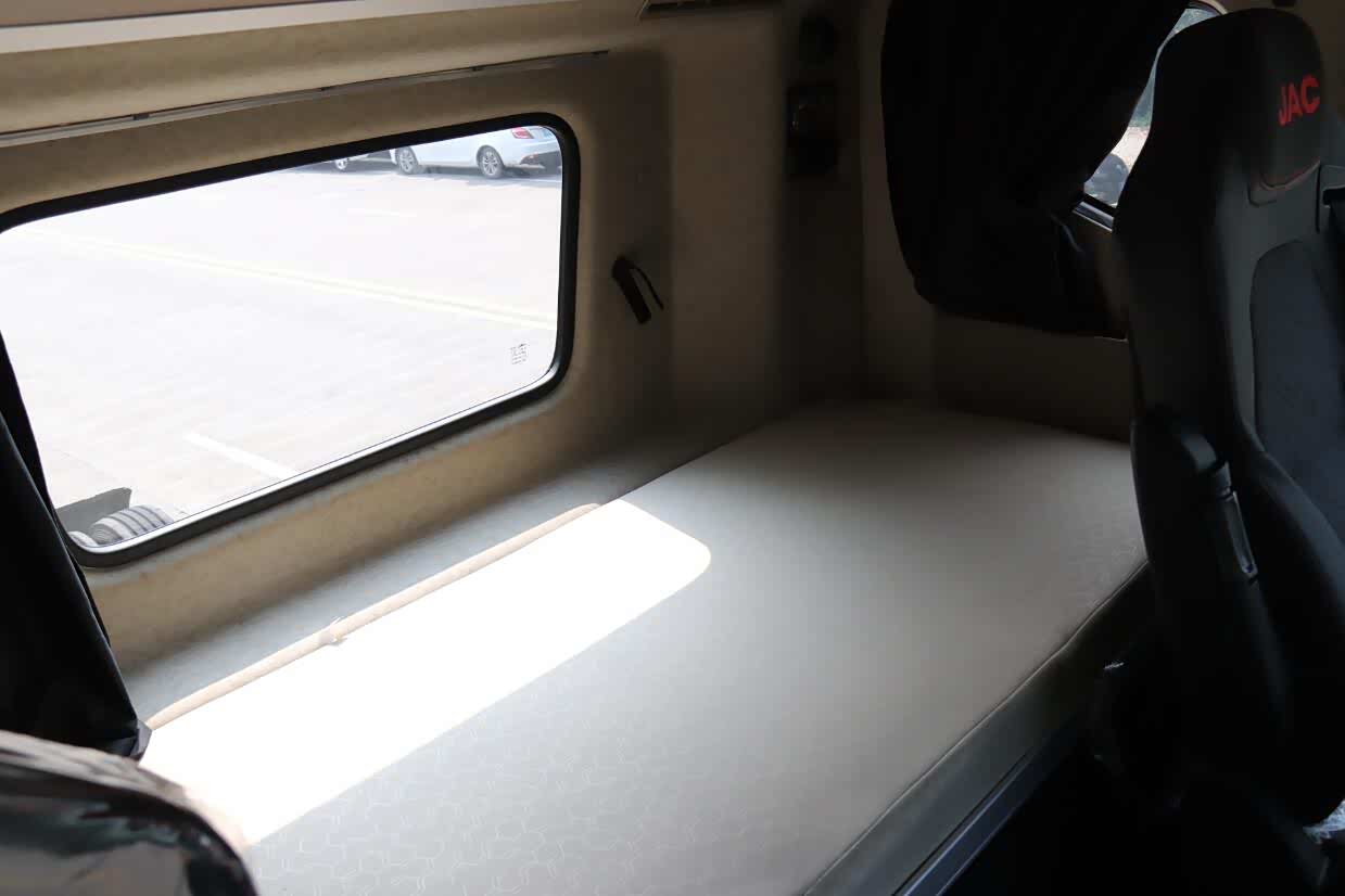 K7在内饰方面采用了当前流行的平地板大空间风格,半环绕式仪表台上部进行了软包设计,减少了硬质材料带来的塑料感,在出风口、音箱以及车门扶手处采用镀铬装饰,按键的做工及安装缝隙有了长足的进步,这些细节的变化提升了内饰的质感。卧铺空间依然保持了格尔发一贯的优势。下卧铺通过驾驶室后窗的凸起式设计,宽度额外增加了13cm,上卧铺宽度接近920mm,而且距离顶部空间比较大,两个卧铺都很实用,唯一不足是上卧铺没有爬梯,上下会有所不便。