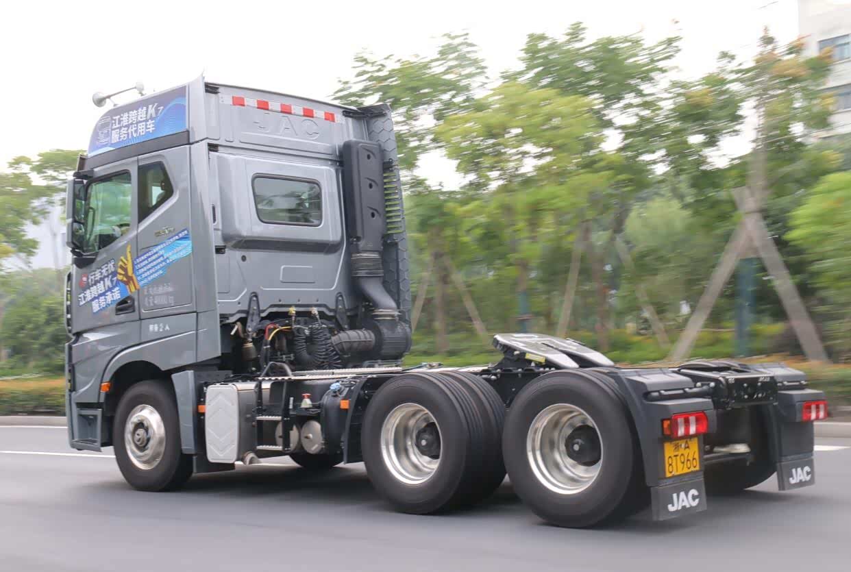 此次试驾地点位于杭州下沙的工业园区,试驾的K7身份有点特殊,这辆最高配的6×4牵引车是江淮格尔发在浙江地区投放的服务代用车,它已经上好牌照办好手续,可以随时响应用户的需求。