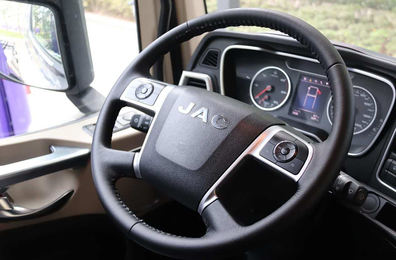在试驾过程中感受最深的就是K7的操控感和平顺性,无论是制动过程,还是换挡及转向操作,已经很接近欧洲进口卡车。据悉,江淮专门请德国专家对K7底盘进行了调校,K7的悬架为前钢板弹簧、后空气悬架,4点空气悬浮驾驶室和空气减振座椅形成两级减振,软硬适中,既有良好的减振效果,在高速行驶时也不会出现发飘。