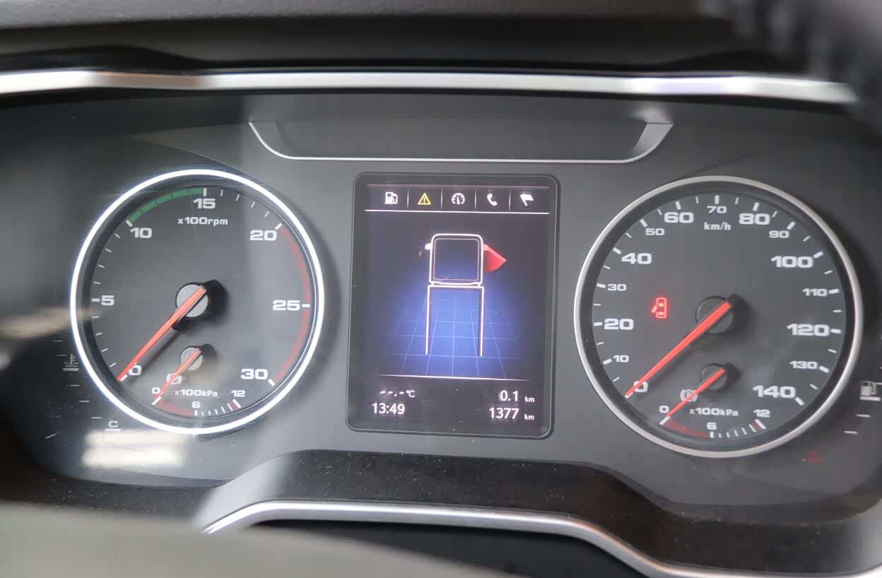 与MC13发动机匹配的是采埃孚16挡Ecosplit手动变速器,这款变速器目前在国内应用比较广泛,它的高低挡为左右分区设计,相当于8挡箱,通过挡把上的拨片可以实现16个挡位,在同一个挡位踩下离合器后拨动拨片,再松开离合器,就进行了一次换挡过程。对于这种换挡方式不同的驾驶员会有不同的评价,见仁见智。但个人认为,在使用前应该对驾驶员进行相应的培训,这样才能发挥出这款变速器的最大优势。