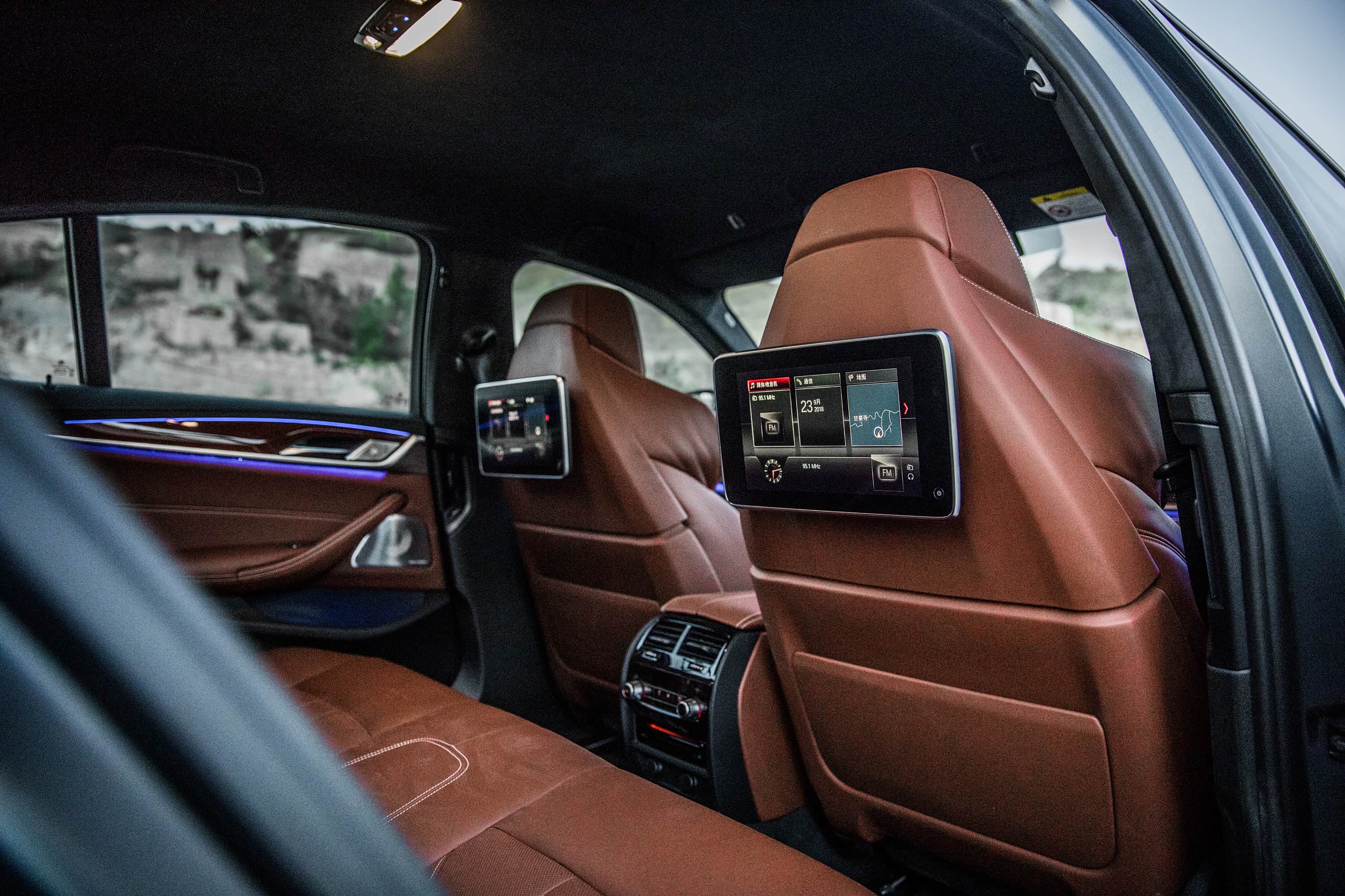 全新一代的M5内饰延续了5系的传统样式,说实话,因为跟5系几乎一样,所以无论是换上碳纤维还是桃木等其它装饰物,看久了照样会感觉腻,细节方面的表现也跟其身份不太相符,模具的合模线、塑料件转角处的毛边,都让人觉得工艺其实还能更好些。不过M5毕竟是M5,它的前排座椅的造型充满了科幻感,真正坐进去后发现,确实挺舒服,包裹性极佳,并且电动调节区域一个都不少。如果你肯舍得再花一万七千块钱,你还能在驾驶席上配备按摩系统。想象一下当你在急加速时,后背还能传来按摩电机划过身体的酸爽,那种感觉……算了我实在是想象不出来。我们再来看后排。后排座椅舒适度还算不错,但感觉还是稍微硬了些,并且靠背角度不可调,久坐之后的疲劳感恐怕要比前排来得早一些。后排出风口得以保留,腿部空间也还不错,好歹也是正统的C级车。当然,买M5 的人应该对后排的关照程度要低一些。