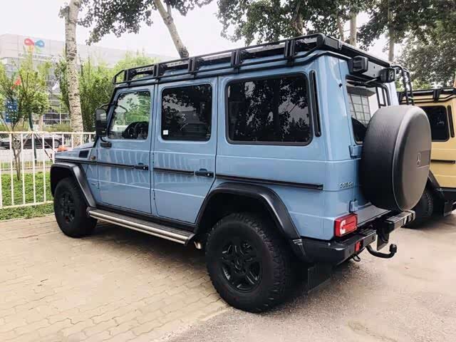 Professional这款 G350d Professional 显然要比 AMG 旗下的 G63 和 G65 来得更加的朴实和纯粹,没有了太多的珠光宝气,倒是多了些越野的实用性准备。可以看到,G350d Professional 采用了黑色哑光的进气格栅,同时在大灯上还增加了防护栅栏。轮毂采用 16 英寸的黑色熏黑轮毂,与之匹配高扁平比的全地形轮胎。