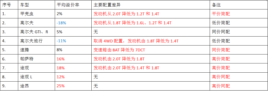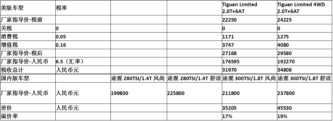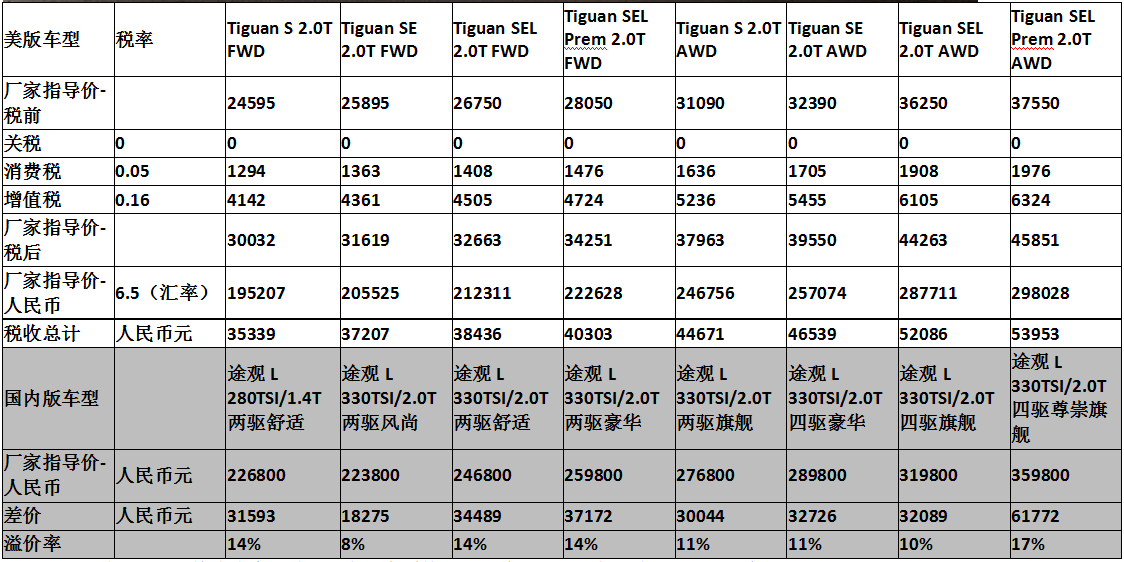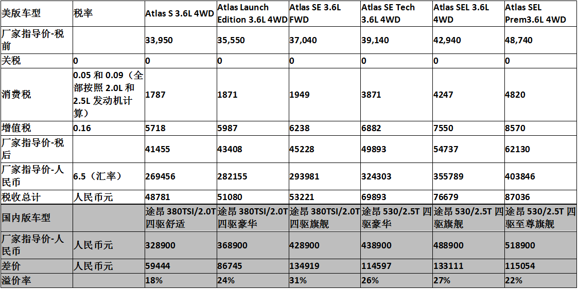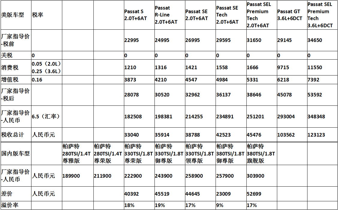 本次笔者对比了大众在中国市场各主流乘用车和美版车型的价格。有这么几个发现:
