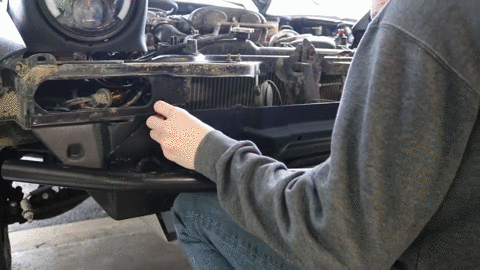 拆下塑料前杠换上强度更高的越野杠