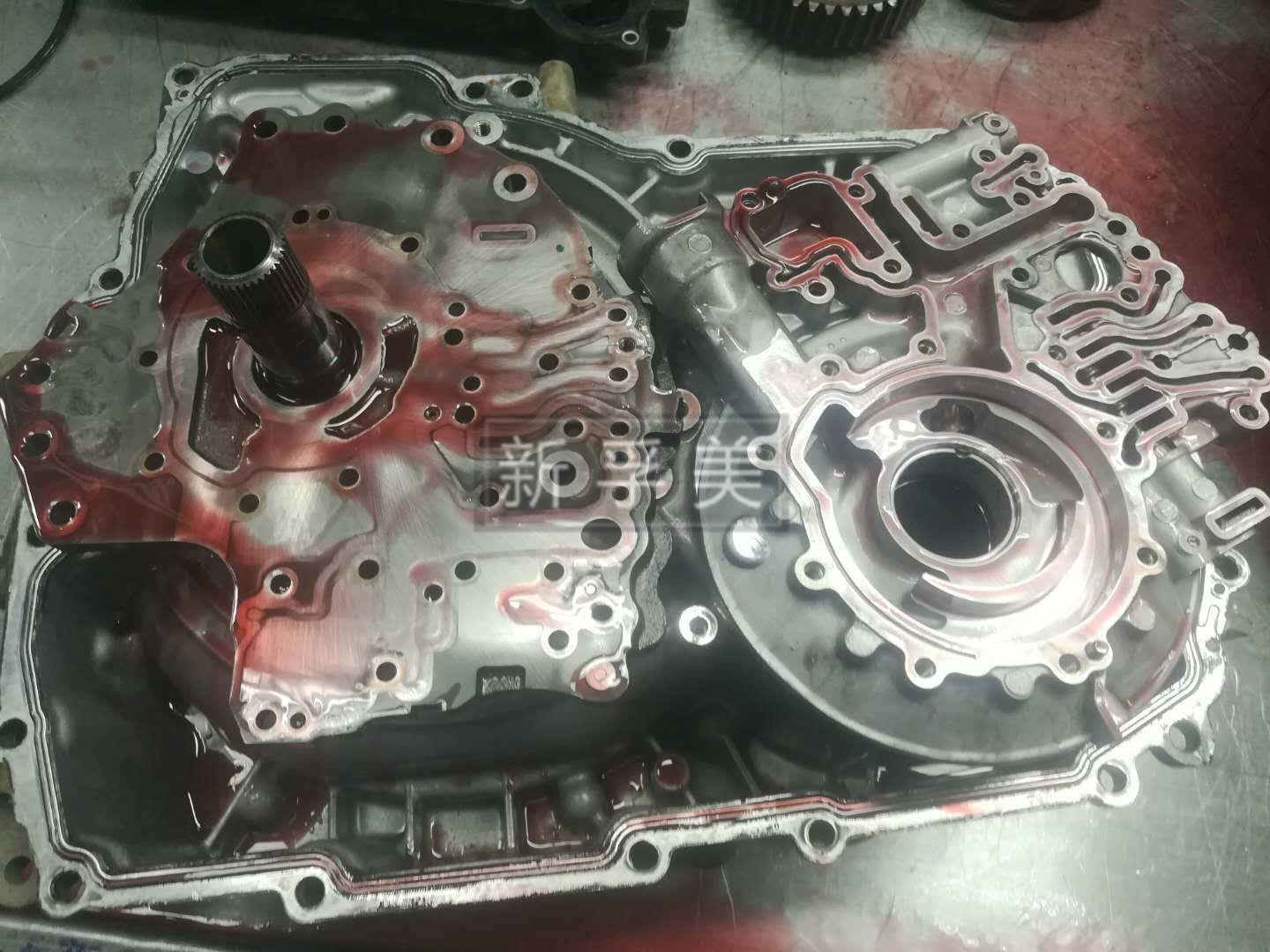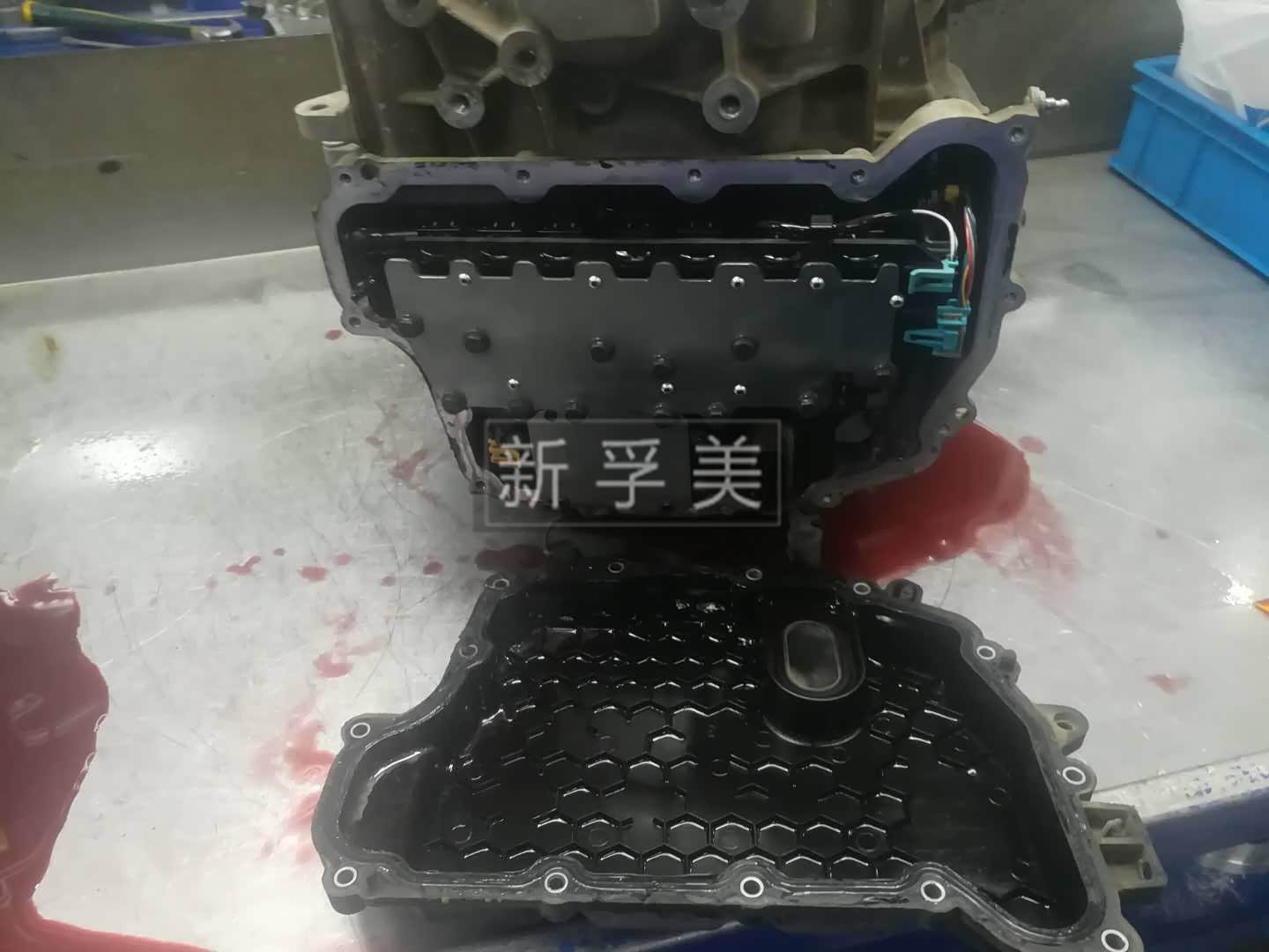 揭完油底壳的面相,大家可以看到此车变速箱油颜色还是很新的,车子刚在一万公里前换过油,这时候对变速箱进行一个全修,的确挺可惜的。但是没办法,局部维修治标不治本,要想根治,只能全修。