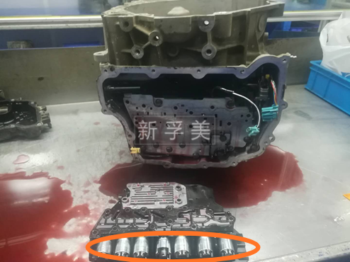 油泵,这是拆解开来的另一半变速箱,单单看油路板就可以明白变速箱内部都是环环想通的。