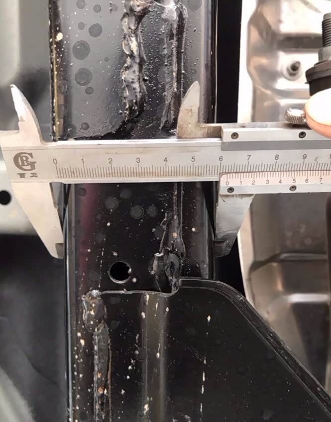 原装拖车组件厚度达到了6.4mm,双层12.8mm的焊接,对比驭胜在沙漠拖车,拖车耳朵飞了......