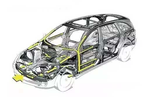 同样是为了保护驾乘室中的人员,在汽车受到撞击时,利用特殊设计的车身,将撞击力分散、转移,从而减少传递到驾乘室的撞击力,达到保护车内乘员的目的。