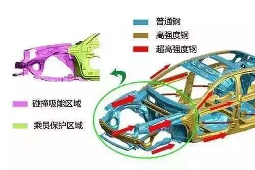 并不是车身所有的材料强度越高越好,要看用在什么地方。如驾乘室的框架(如横梁、纵梁、ABC柱等),为了使驾车室的空间尽量不变形(保证驾乘人员安全),就必须采用高强度的材料。如车前和尾部的材料(如引擎盖板、翼子板等),为了能够吸收撞击力,可以使用强度相对较低的材料。