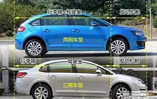 日常生活中我们经常会听到两厢车、三厢车这个词,它们到底是怎么来划分的:通常我们把汽车的发动机室、驾驶室、行李箱分别称为轿车的“厢”,如这三个厢是相互独立的,就称为三厢车。如果驾驶室和行李箱是结合在一起的,则称为两厢车。