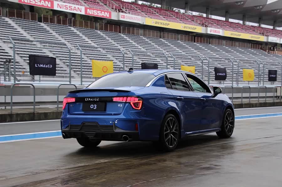 富士高速赛道的路面状态非常好,没有太多颠簸和震动,不过在把车开上路肩的状态时能够多少感觉到悬挂的品质感不错。试乘领克03的悬挂是前麦弗逊后多连杆,轮胎则是固特异的Eagle F1。