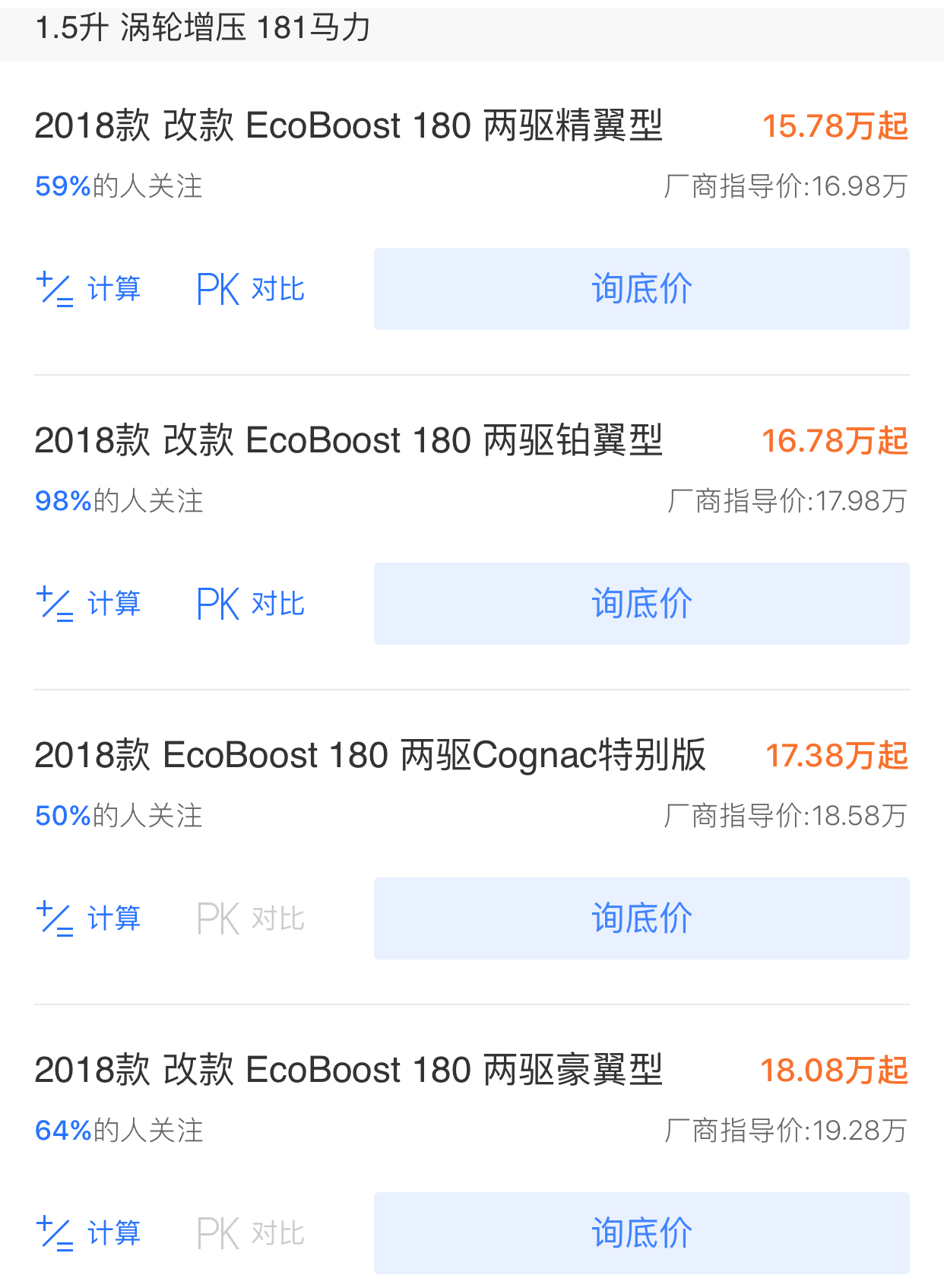 其实今年年初的时候福特已经进行第两次的官方降价了,降幅还不小,基本在1.5万-2.1万之间,再加上终端经销商的优惠,最低配翼虎的入门价基本已经在15万元左右了,这样空前的价格冰点实在是非常诱人。