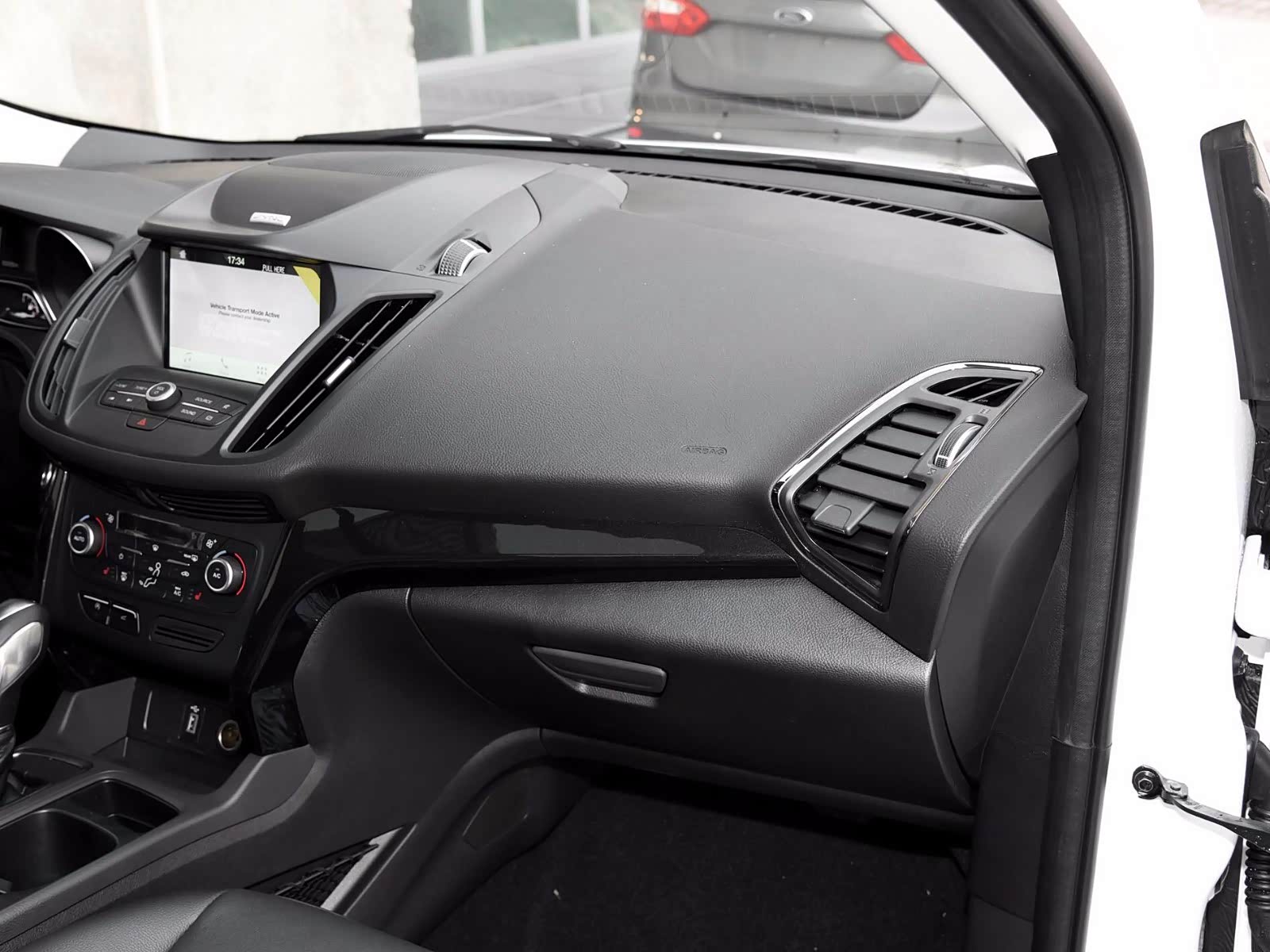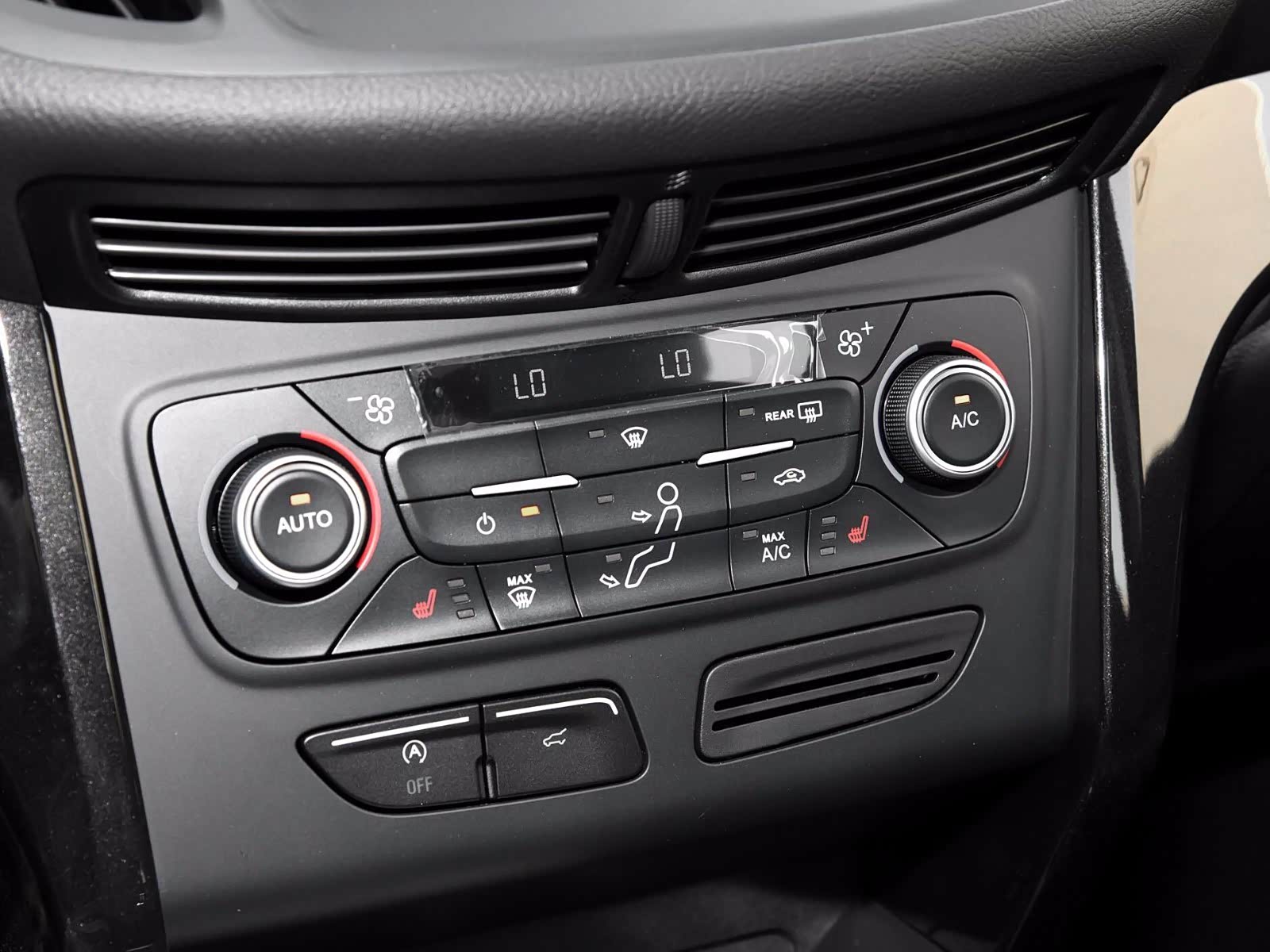 停留在上一代福特设计语言的翼虎中控区分层设计显得有些复杂,加之空调控制区按键众多,整体色彩都是黑色,看上去满满都是廉价塑料感。