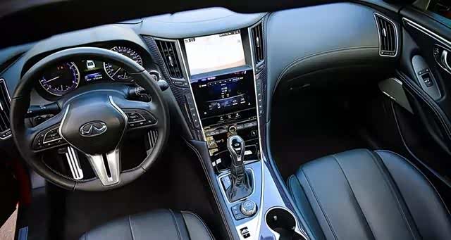 Q60内饰秉承了日系豪华车的一贯风格,采用了大面积软质皮革包裹,非常显档次。三幅式方向盘左右按键分区明确,有档次的同时也不失运动手感。仪表盘采用常规的双圆形设计,中间小小的液晶屏提供基础的信息查询功能。