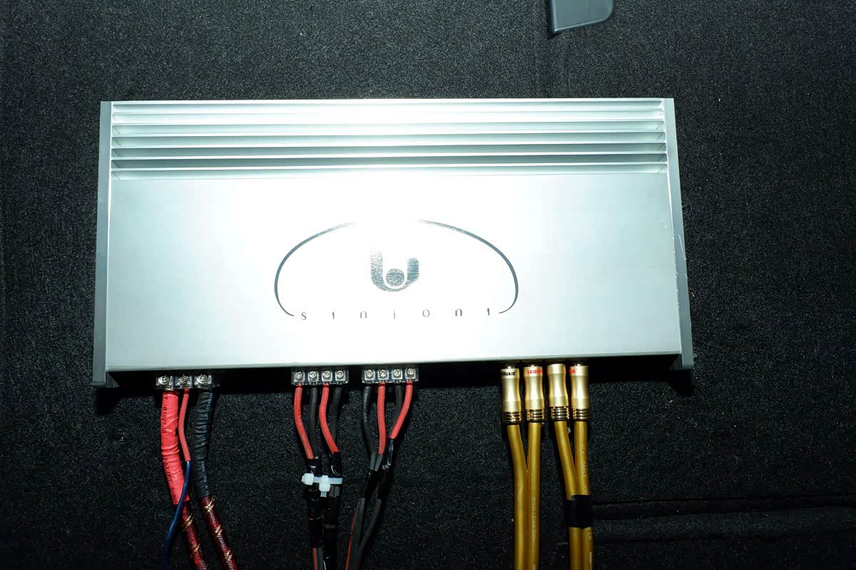 诗芬尼MA90.4功放安装效果,金色为雷歌竞赛级音频线