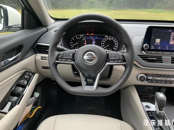 来到车内,第七代天籁采用了时下流行的设计手法,悬浮式多媒体屏、舒缓的线条设计、更加简洁的中控布局,虽然不如外观来的那么激进,但日产多年来的“居家”风格还是保留了下来。方向盘采用了三幅式平底设计,手感出色。