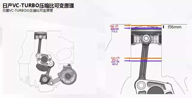 可变压缩比,而且是在涡轮车型下的可变压缩比,这在业界肯定算是独树一帜的技术。从前,我们只听说通过电脑控制可将发动机气缸内连杆的高度进行调控,采用可变升程的方式合理高效的控制燃油的喷射与燃烧程度,但发动机的压缩比基本是一致的。但全新的天籁,在2.0升四缸发动机的基础上,外加涡轮增压器,压缩比可以在8:1、11:1、14:1三个状态下对动力进行输出,有点意思吧?