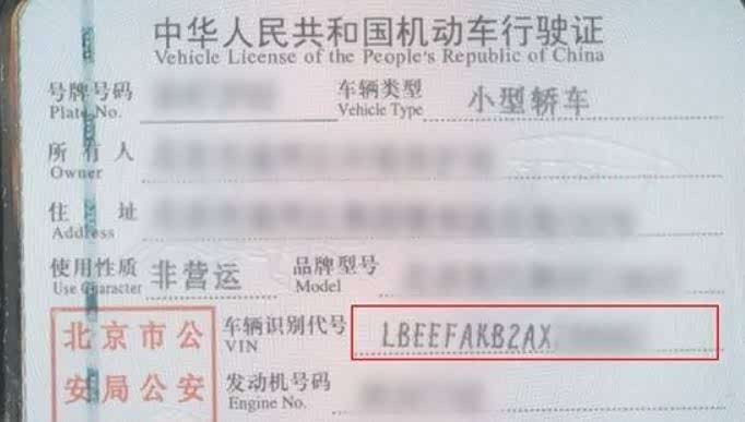 除了车上,行驶证上也会印着你的爱车VIN码。