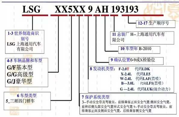 和通用汽车的VIN码在车辆特征信息字段和车辆序号的设计上都不一样。
