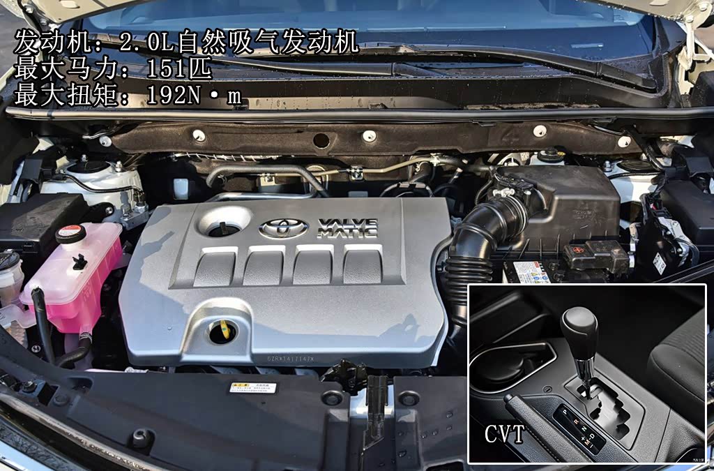 荣放搭载了一台2.0L自然吸气发动机,其并不是丰田最新的那款,故参数并不亮眼,不过胜在稳定与可靠,而CVT也能尽力保证荣放的燃油经济性。