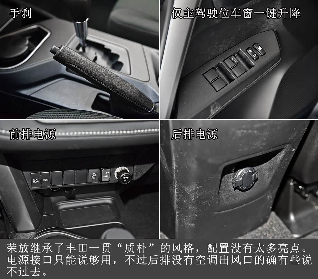 看完上面对荣放的介绍,你或许已经对它的配置不抱有任何希望。的确,它的配置水平是四台车中最“寒酸”的那一个,不过这就是丰田的态度。