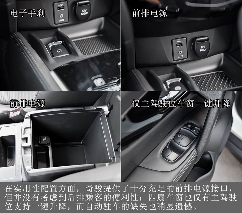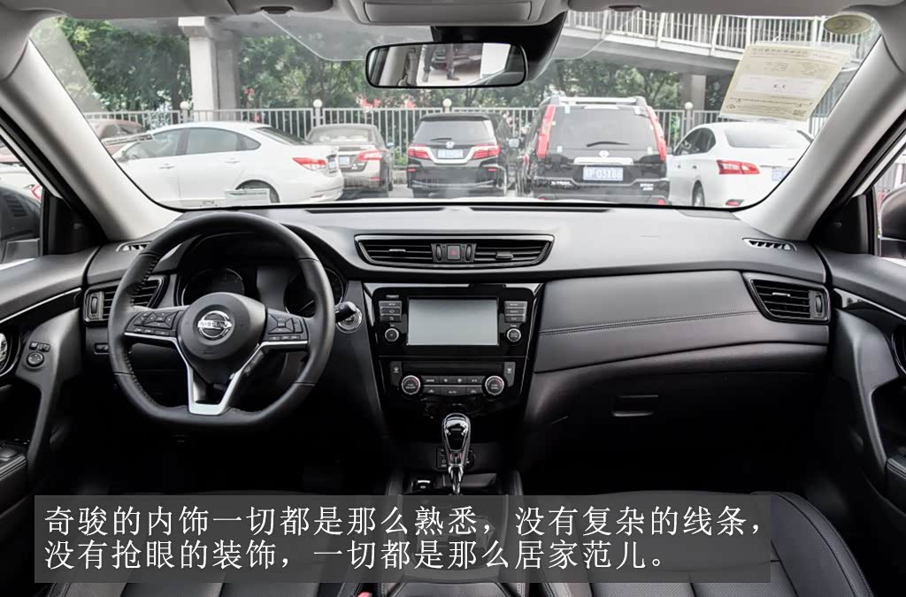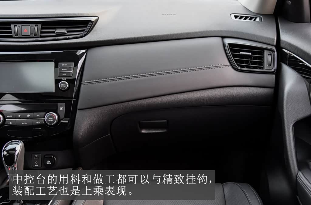 奇骏对称式的内饰布局略显老气,没有用不同的色彩搭配来丰富视觉感知,整体设计一板一眼较为规整。