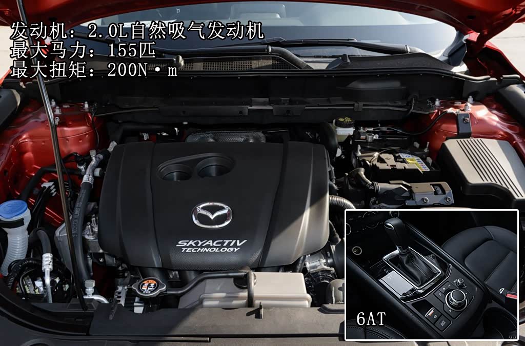 CX-5搭载了大家熟知的2.0L创驰蓝天发动机,与之匹配的是6速自动变速箱。这套动力总成线性的动力输出和超快的响应速度成为了很多人津津乐道的谈资。