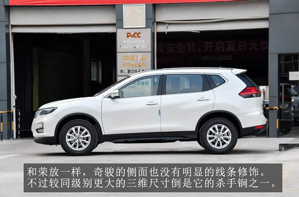 我相信跟多购买奇骏的消费者看中的就是它那庞大的身躯。外形上奇骏和CX-5完全走了两个不同的道路,一个忠于颜值,一个忠于尺寸。