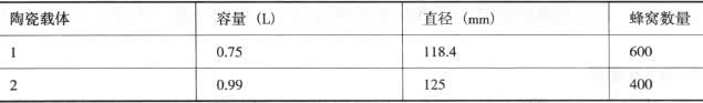 N20发动机催化转换器的自瓷裁体技术参数见下表。