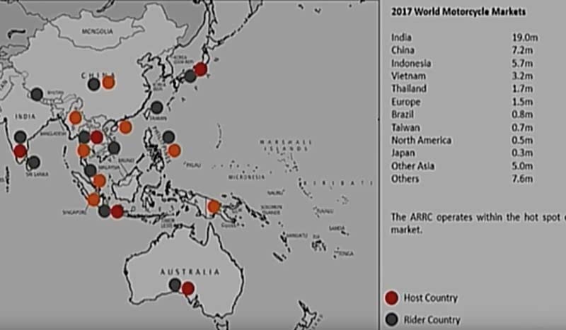 ▲雅马哈在公布2019款YZF-R25/R3时所使用的亚洲摩托车市场分布图(调查于2017年)。相较于日本国内只有30万台的摩托车市场,印度竟然是规模大到吓人的1900万台!这个数字远远胜过中国的720万台以及印尼的520万台,因此全球的摩托车厂牌都争相进军印度市场。