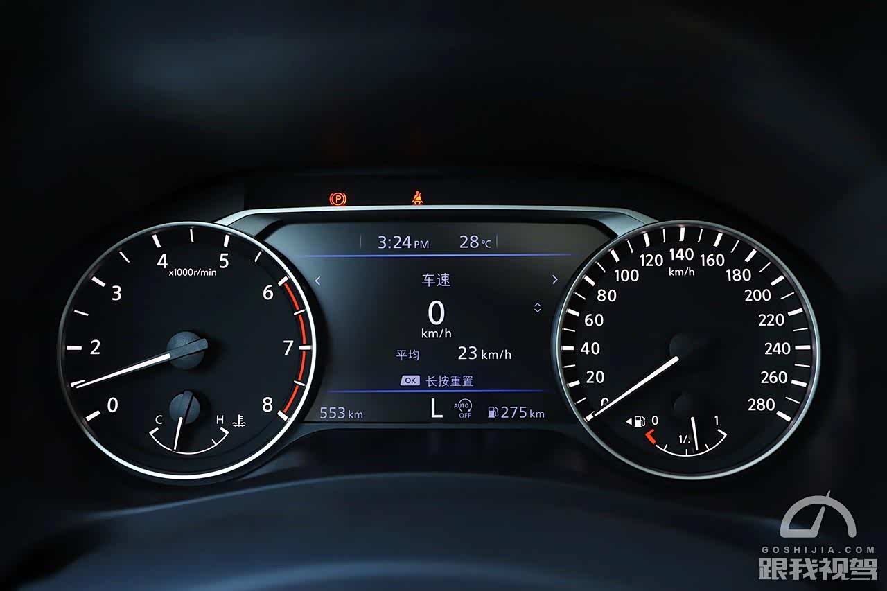 天籁的仪表板采用的是指针和液晶屏幕的组合方式。指针式仪表板虽然没有全液晶仪表那么具有科技感,但是对于日常行车的读数还是非常便捷的,而且在高配车型上还提供HUD抬头显示功能。中间的仪表板可以显示很多的内容,包括VDC设置、驾驶辅助设置、ECO模式设置、胎压监测设置、时钟、车辆设置等等。