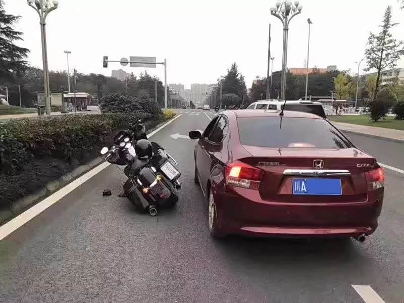 除了思域怼杜卡迪的,还有本田CITY怼哈雷的。据车友说,就在前不久,一老人开一台本田CITY撞了一台哈雷,起初老人认为哈雷是没牌的,一直晃远光灯想让哈雷车主给他让路。从后面追上来开窗大骂,并把哈雷车主强行撞倒……