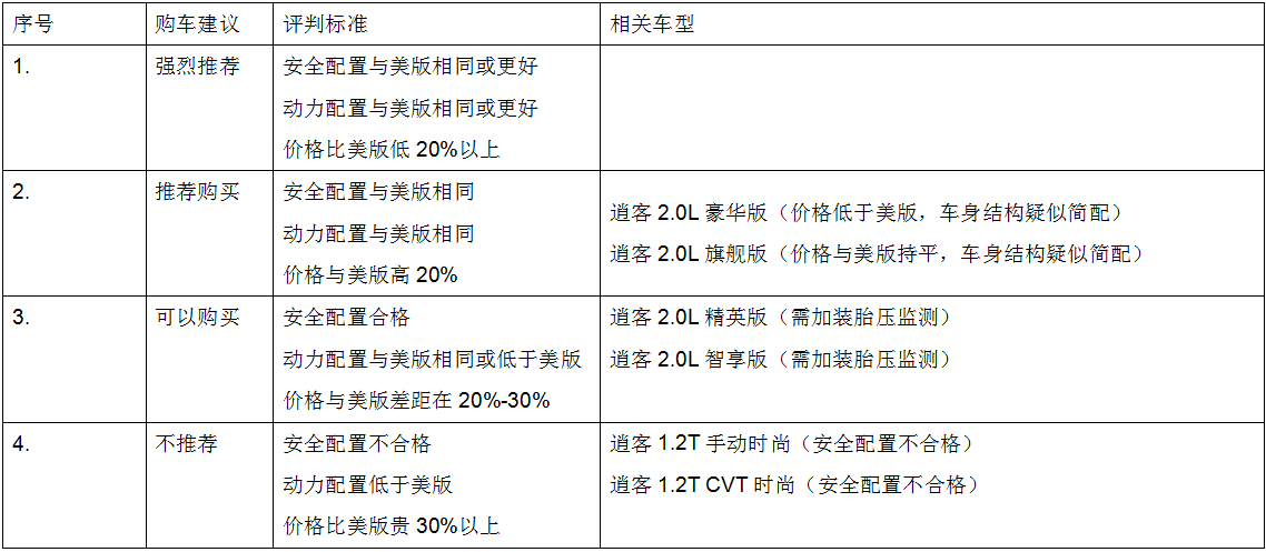 针对逍客的配置,笔者对国内版逍客给出的购买建议如下: