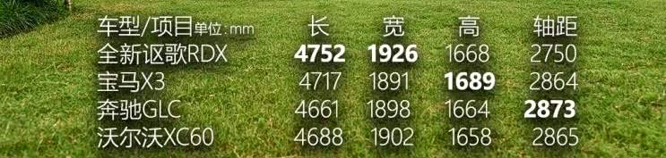 就竞争激烈的豪华中型SUV市场而言,尺寸是大部分消费者都非常关注的,讴歌RDX的长宽高分别为4752*1926*1668mm,轴距为2750mm。和同级竞争对手相比,长度和宽度都有着很大优势,但轴距表现却很落后,对后排空间表现会有很大影响。