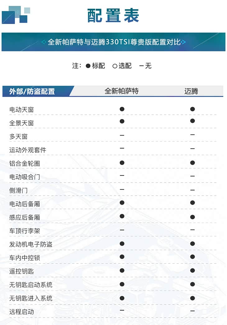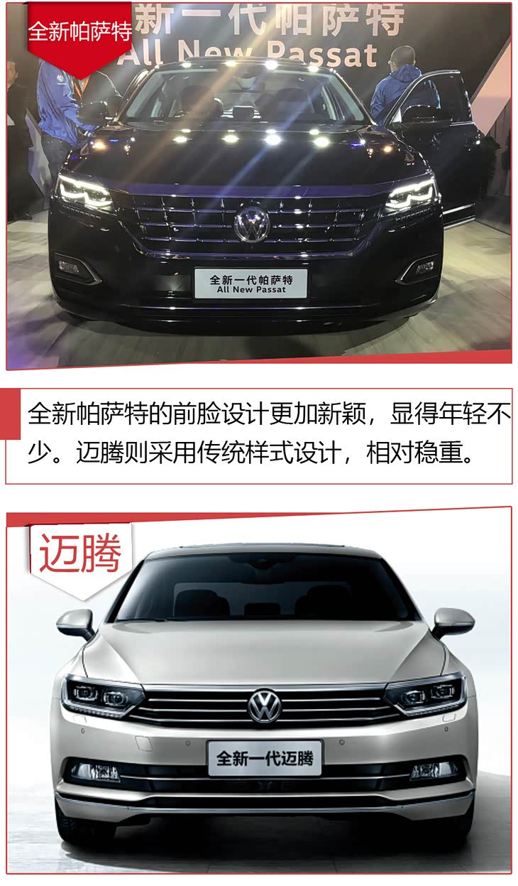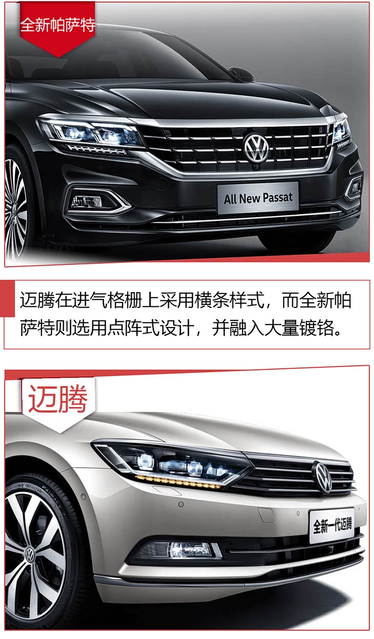 总结:两款车型在大众家族中均属于B级商务车型,在外观设计上有的各自的特点,迈腾设计较为保守,而全新帕萨特则想着豪华车型靠拢,采用车名英文为布局中的设计,显得格外的高档。两款车型的价格均为25.89万元,但是在配置上帕萨特与迈腾有着23项配置差异,尺寸上全新帕萨特也要略大一些,如果是你选,你会如何选择?