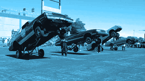 现在Lowrider被彻底融入到嘻哈文化中,变成了嘻哈界业内人士的大玩具。伙计们凑到一块切磋技艺,看谁弹跳的更高,看谁能随这音乐的律动跳的最好等,还有一些技术宅老伙计将二战时的飞机液压推进器装入车的后备箱中,再链接到四个车轮上,使汽车拥有液压减震设备,使汽车可以随意弹跳。