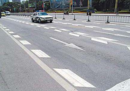 第二个:锯齿车道线。这种路面标线也是近几年才引进的,很多老司机都在这条道上迷糊犯错,它所在的道路叫可变车道,一般出现在十字路口。这个标志设计的目的就是实现车辆引流,根据当时的具体交通情况,可以变换流向。这就需要司机看清当时的信号灯指示,是直行还是左转要看明白,一旦弄错3分200元就没了。
