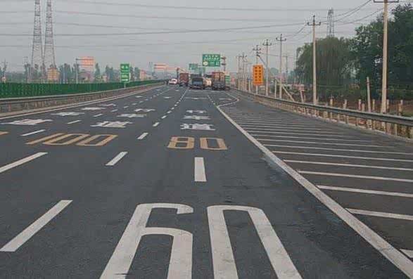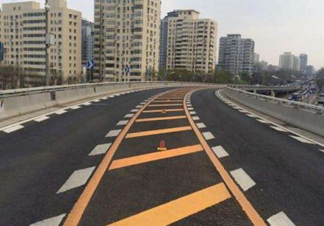 第五个:纵向减速标志。大家都熟悉横向减速标志,也就是常说的减速带。纵向减速标志是一种新标志,设计的目的也是减速。通常会在上下桥或者转弯的地方看到,它的设计使司机在视觉上感觉车道在逐渐变窄,他会不由自主的减速,这一举措有效的防止了紧急刹车。