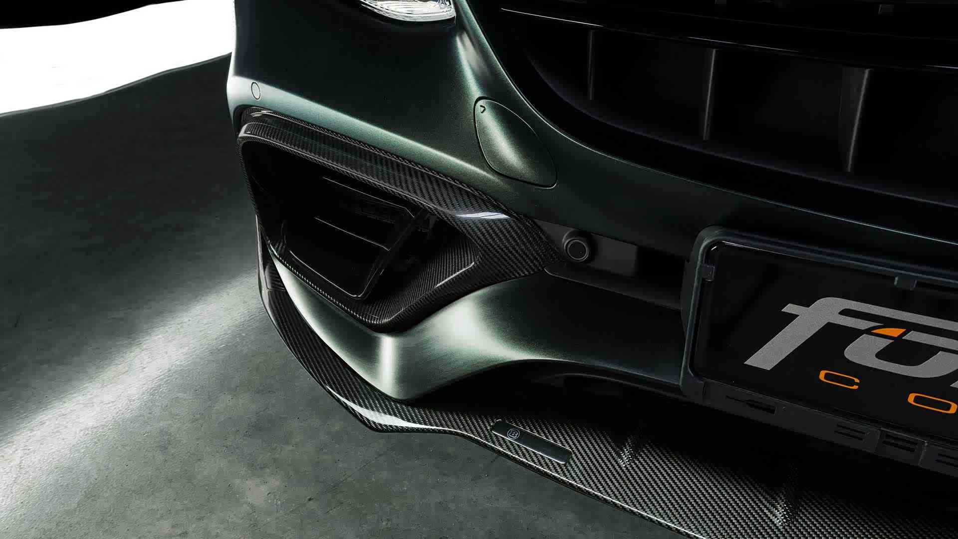 外观上我们可以看到相比于普通版车型该车是有所微调的,正如你所见到的一样,重新设计的中网加上硕大的巴博斯LOGO,同时,前保险杠下方还增加了碳纤维材质的前唇。同时,整车墨绿色的涂装也颇具性能范。