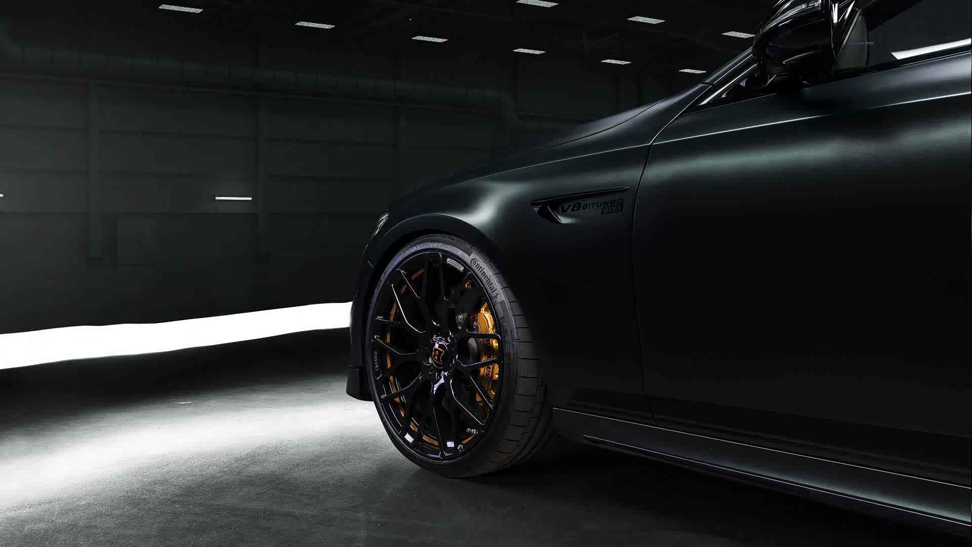 动力方面,新车在原来的AMG E63 S的4.0TV8发动机的基础上升级了性能更为强大的涡轮,这使得它原厂612马力、850N·m的数据一下飙升到了789马力、1000N·m的炸裂水平,这也使得它原本3.4s的百公里加速提升到了3s,性能已经完全是超跑的级别了。