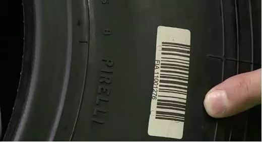 FIA认证的条码:普通轮胎条码没有限制,而F1的轮胎的条码必须从FIA认证的生产厂家处购买,价格也不便宜。不过我们讨论的是F1轮胎,谁会关系价格呢!