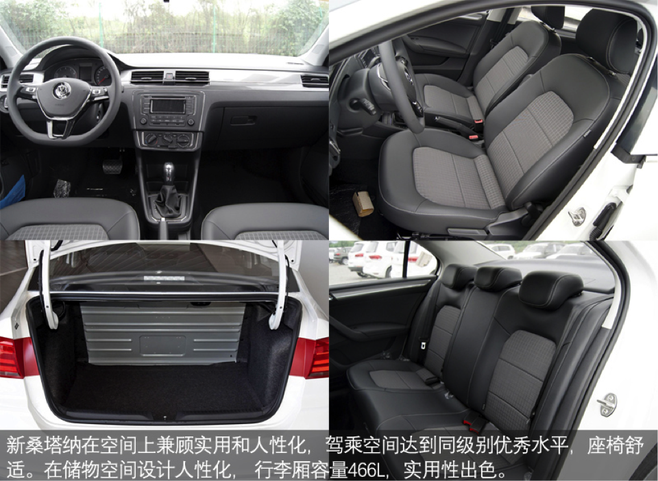 在实用性方面,新桑塔纳也兼顾实用和人性化,其车身尺寸为4473*1706*1469mm,轴距达到了2603mm,不仅驾乘空间达到同级别优秀水平,而且座椅完美贴合人体肩部、腰部及腿部曲线,提供扎实舒适的支撑效果。在储物空间方面,新桑塔纳也有着非常人性化的设计,前后门板的储物槽空间很大,前后排乘客都能很方便的找到储物的空间,再加上466L 超大容量行李厢,充分满足用户一家出行载物需求。出色的实用性让用户在前期购车阶段就非常的省心。
