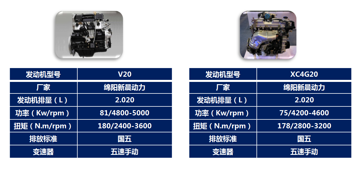 金龙海狮厢货提供两款都来自于绵阳新晨的2.0升V20和XC4G20直列四缸自然吸气汽油机,匹配中马五速手动变速器,保证中程加速持续有劲,但低速起步阶段不如柴油机理想。