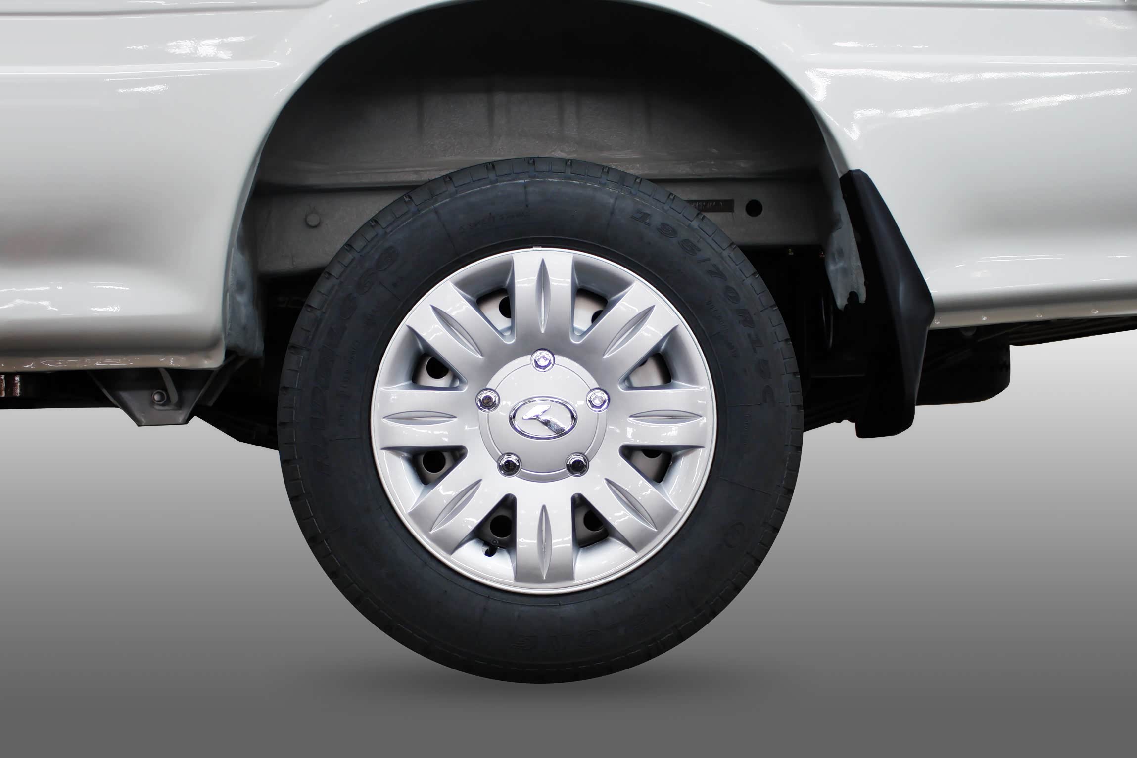 跑物流或拉货跑,车辆在路上行驶的时间注定很长,对于轮胎的选择也至关重要,优先考虑耐磨的,其次是省油的。金龙海狮厢货采用山东玲珑牌的195mm宽胎,接地面积大,磨损小,操控性强,核心在于“耐磨”。